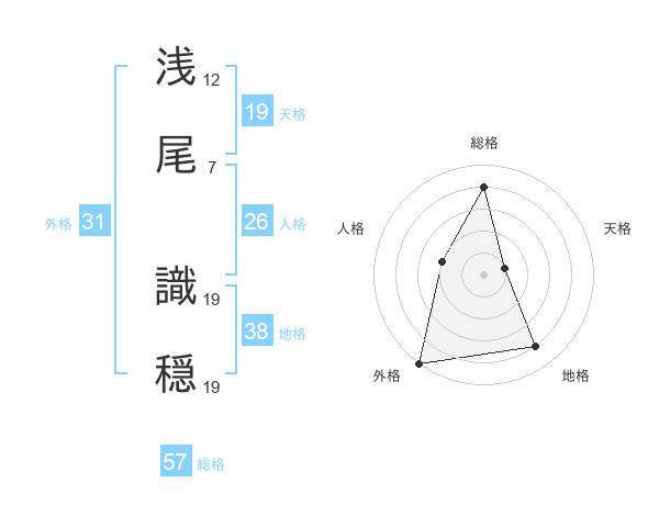 浅尾 識穏さんを姓名の画数から五運を鑑定