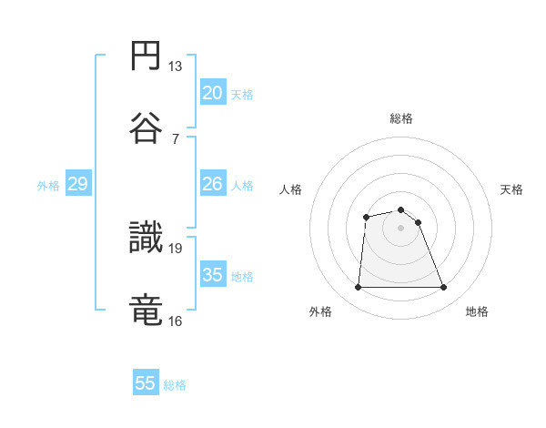 円谷 識竜さんの総格は55画の1点!