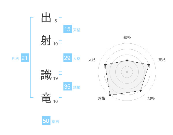 出射 識竜さんの外格は21画の5点!