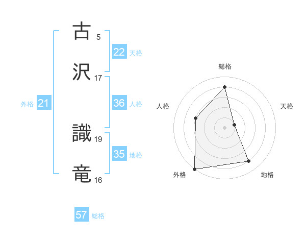 古沢 識竜さんの総格は57画の4点!