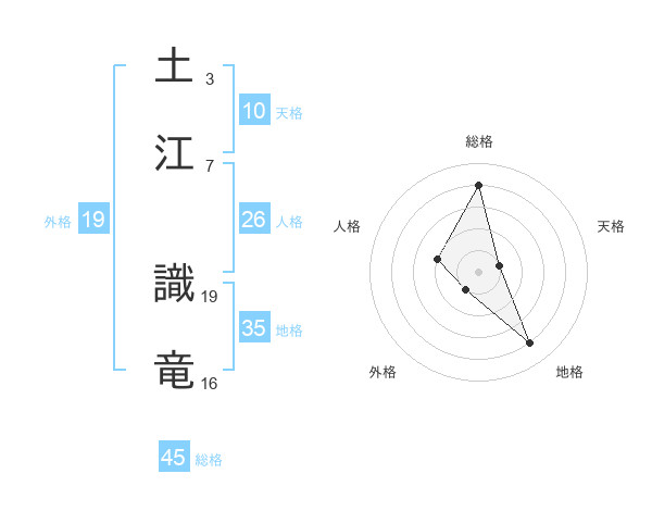 土江 識竜さんの総格は45画の4点!