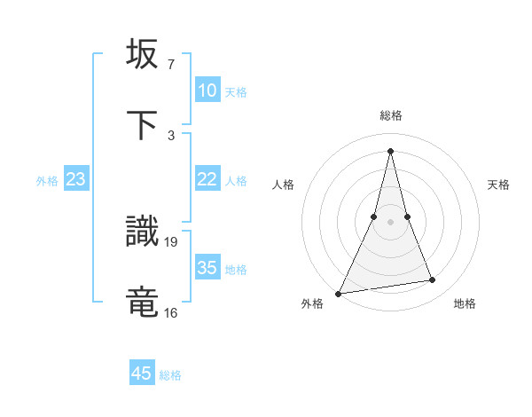 坂下 識竜さんの総格は45画の4点!