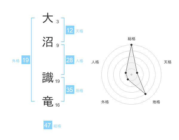 大沼 識竜さんを姓名の画数から五運を鑑定