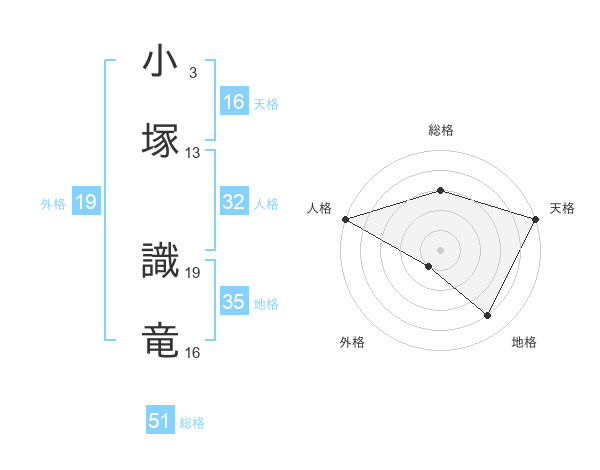 小塚 識竜さんを姓名の画数から五運を鑑定