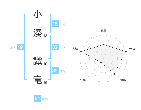 小湊 識竜さんを姓名の画数から五運を鑑定
