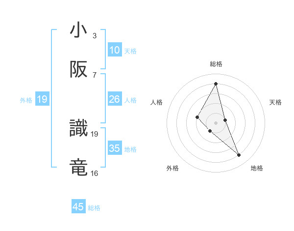 小阪 識竜さんの総格は45画の4点!