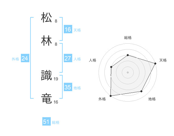 松林 識竜さんの総格は51画の3点!
