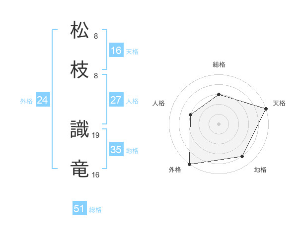 松枝 識竜さんを姓名の画数から五運を鑑定