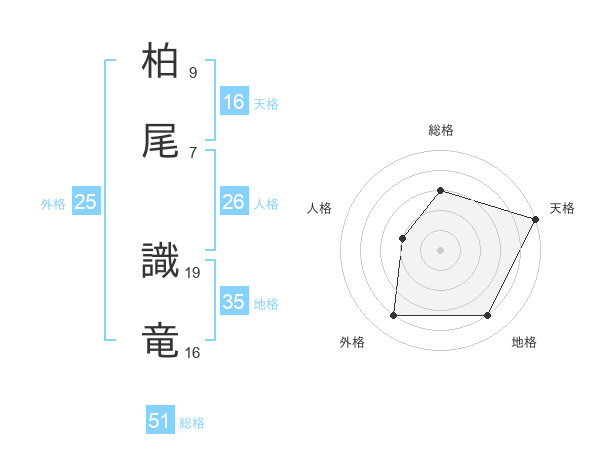 柏尾 識竜さんの総格は51画の3点!