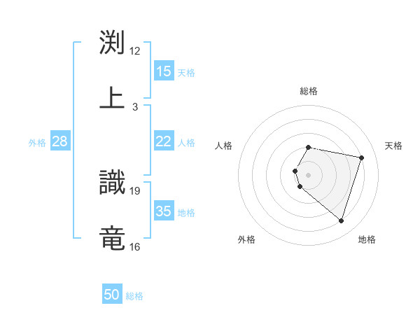 渕上 識竜さんの総格は50画の2点!