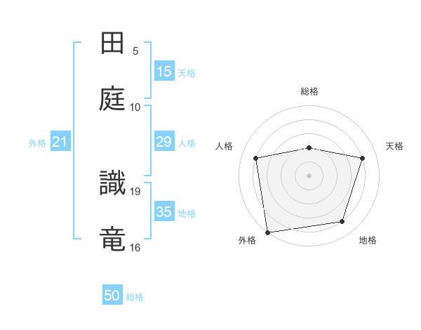 田庭 識竜さんを姓名の画数から五運を鑑定