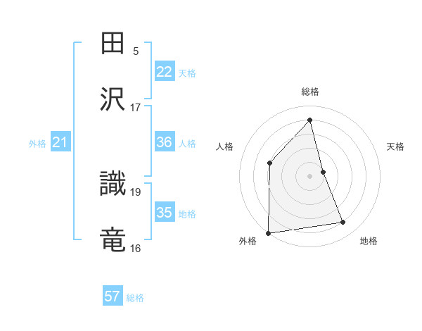 田沢 識竜さんを姓名の画数から五運を鑑定