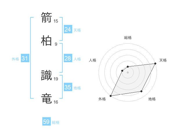 箭柏 識竜さんの外格は31画の5点!