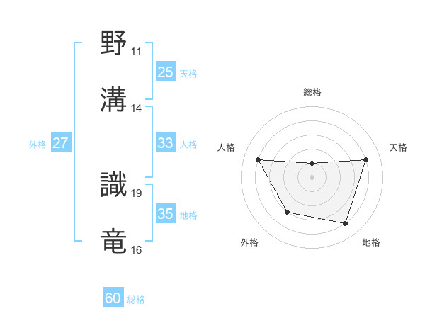 野溝 識竜さんの天格は25画の4点!