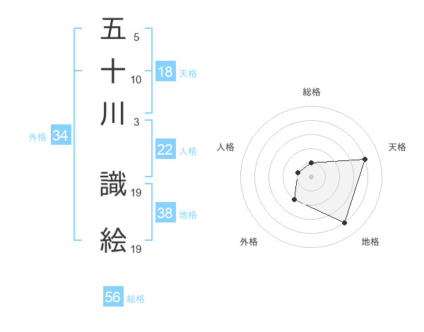 五十川 識絵さんを姓名の画数から五運を鑑定