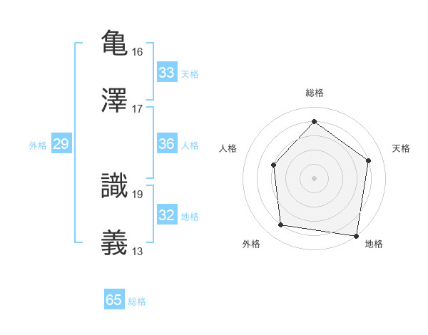 亀澤 識義さんの総格は65画の4点!