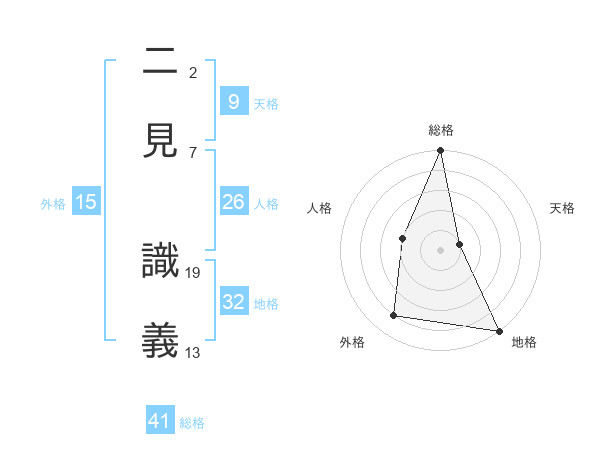 二見 識義さんの総格は41画の5点!