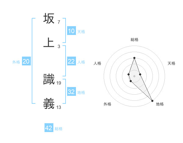 坂上 識義さんの総格は42画の3点!