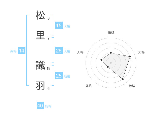 松里 識羽さんの総格は40画の2点!