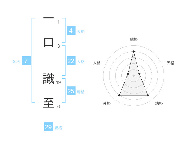 一口 識至さんの総格は29画の4点!