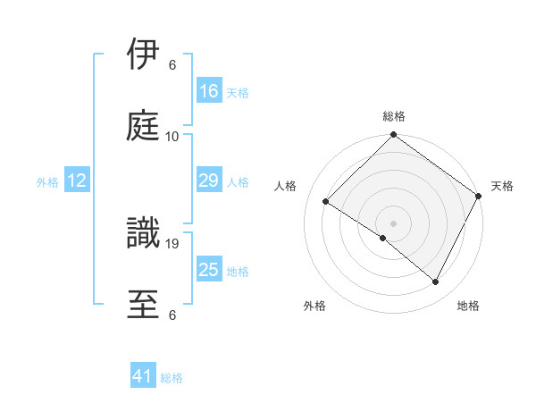 伊庭 識至さんの天格は16画の5点!