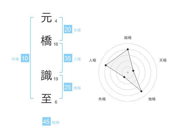 元橋 識至さんの総格は45画の4点!