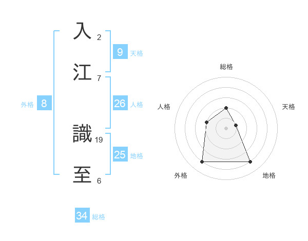 入江 識至さんの地格は25画の4点!