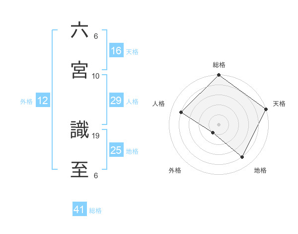六宮 識至さんの総格は41画の5点!