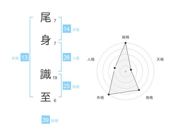 尾身 識至さんの総格は39画の5点!