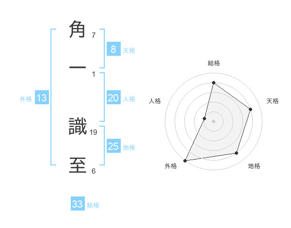 角一 識至さんの総格は33画の4点!