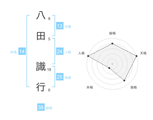 八田 識行さんの総格は38画の4点!
