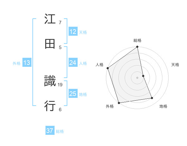 江田 識行さんの総格は37画の5点!