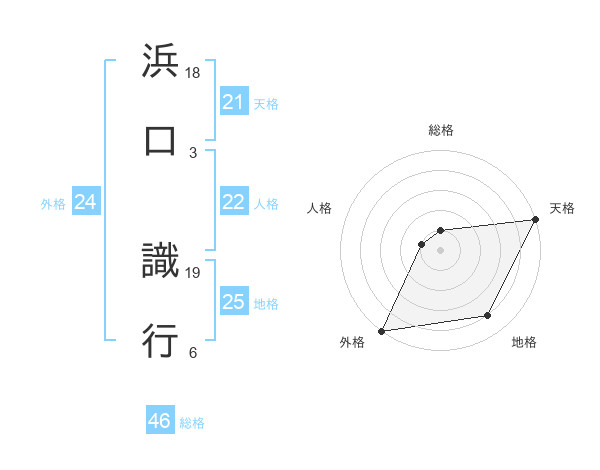 浜口 識行さんの外格は24画の5点!