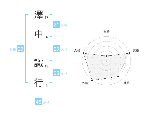 澤中 識行さんの外格は23画の5点!