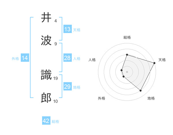 井波 識郎さんの天格は13画の5点!