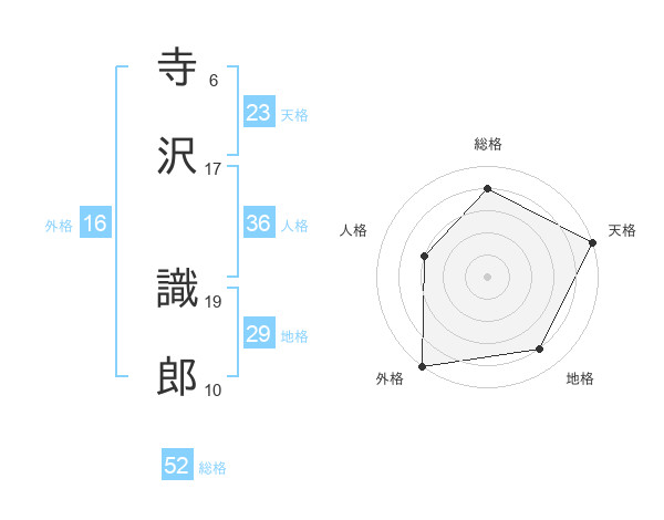 寺沢 識郎さんを姓名の画数から五運を鑑定