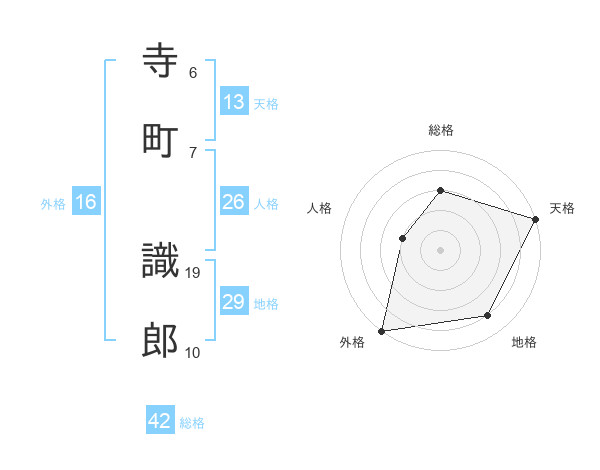 寺町 識郎さんの天格は13画の5点!