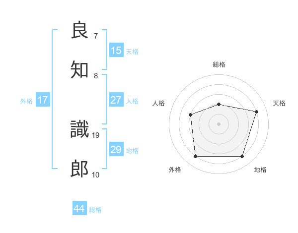良知 識郎さんの天格は15画の4点!