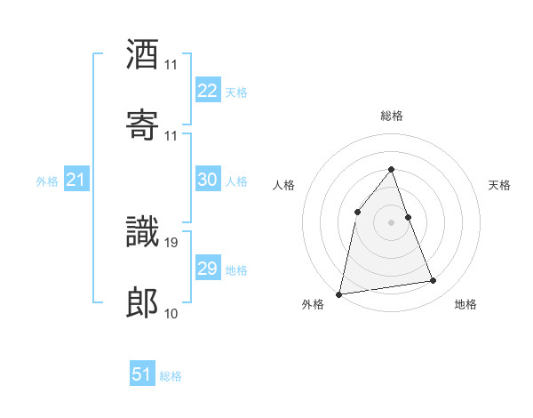 酒寄 識郎さんの外格は21画の5点!