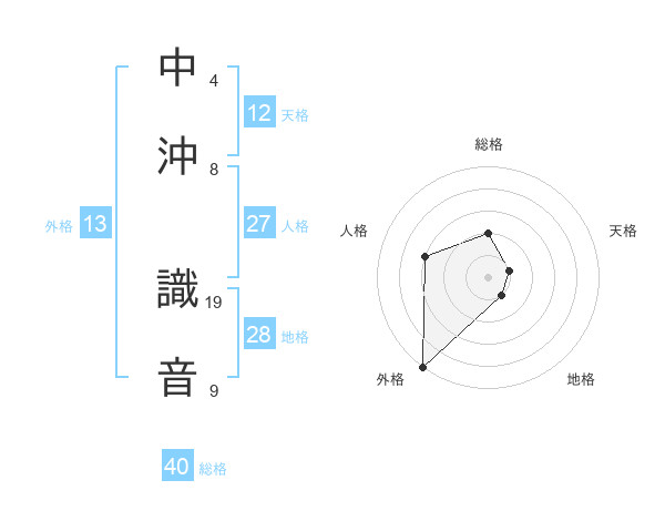 中沖 識音さんの外格は13画の5点!