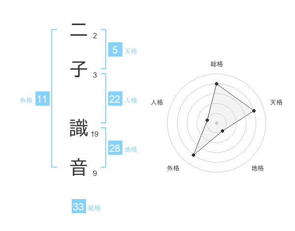 二子 識音さんの総格は33画の4点!