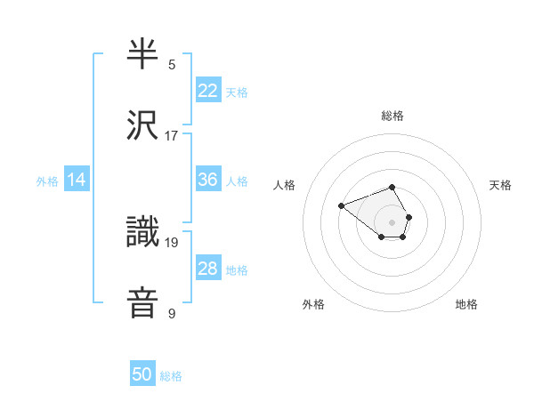 半沢 識音さんの総格は50画の2点!