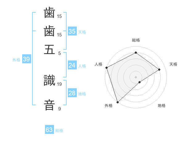 歯歯五 識音さんを姓名の画数から五運を鑑定