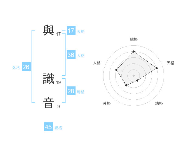 與 識音さんの総格は45画の4点!