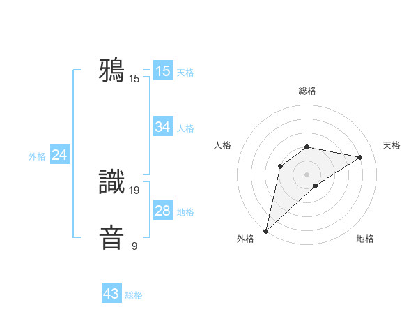 鴉 識音さんの天格は15画の4点!