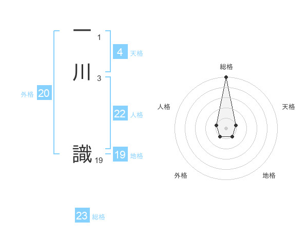 一川 識さんの総格は23画の5点!