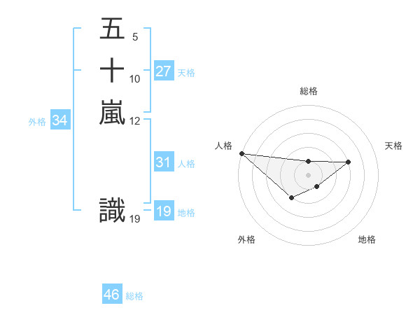 五十嵐 識さんの総格は46画の1点!