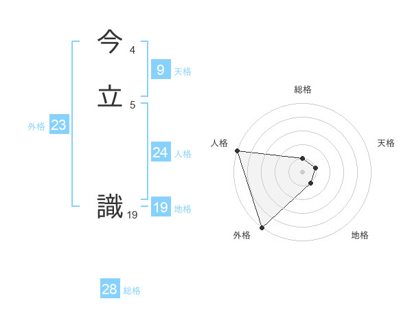 今立 識さんの外格は23画の5点!