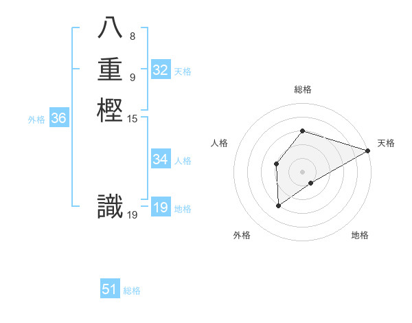 八重樫 識さんの総格は51画の3点!