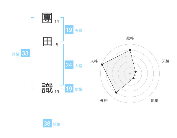 團田 識さんの総格は38画の4点!